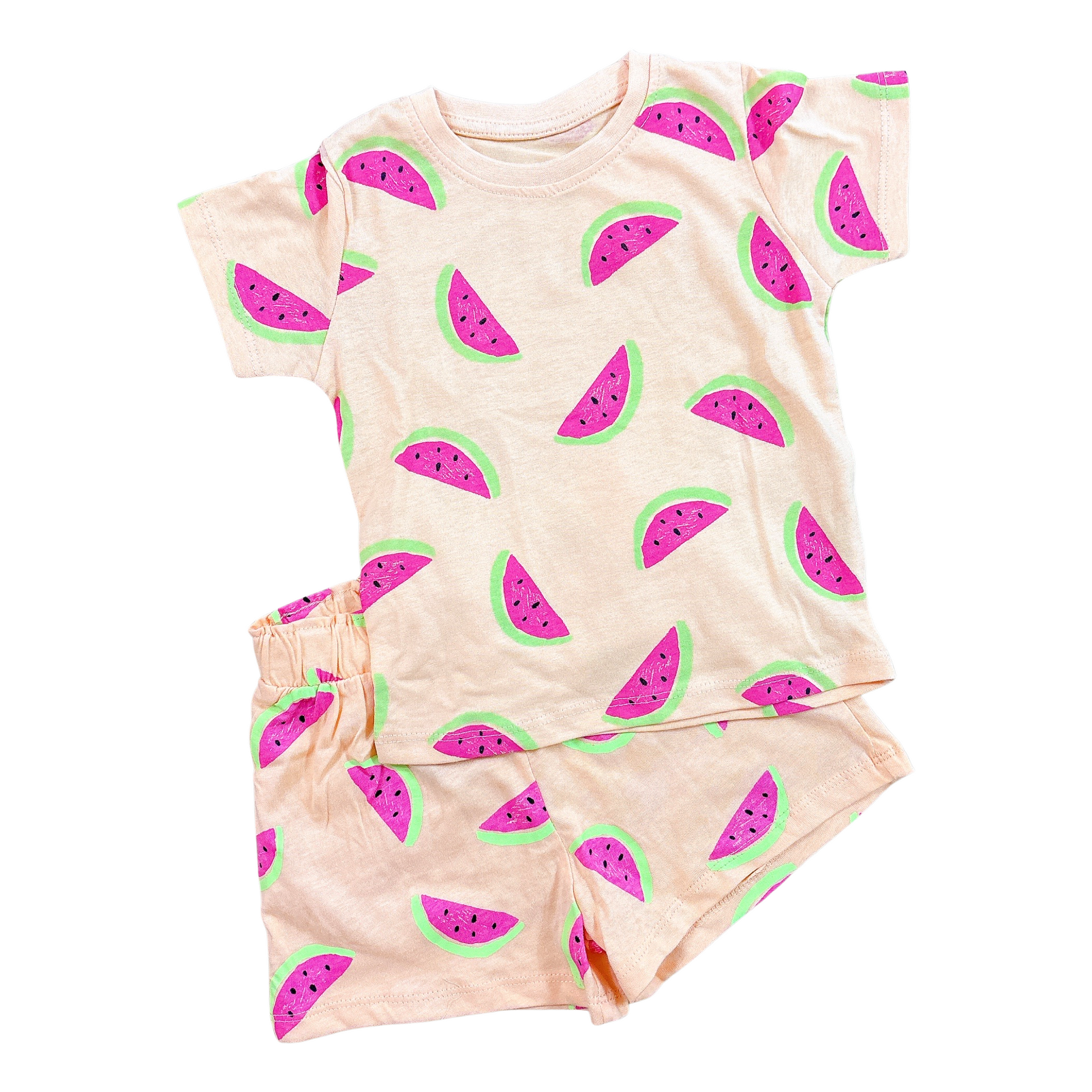 Set de short y blusa color peach y sandías. Super suave y fresco para el clima